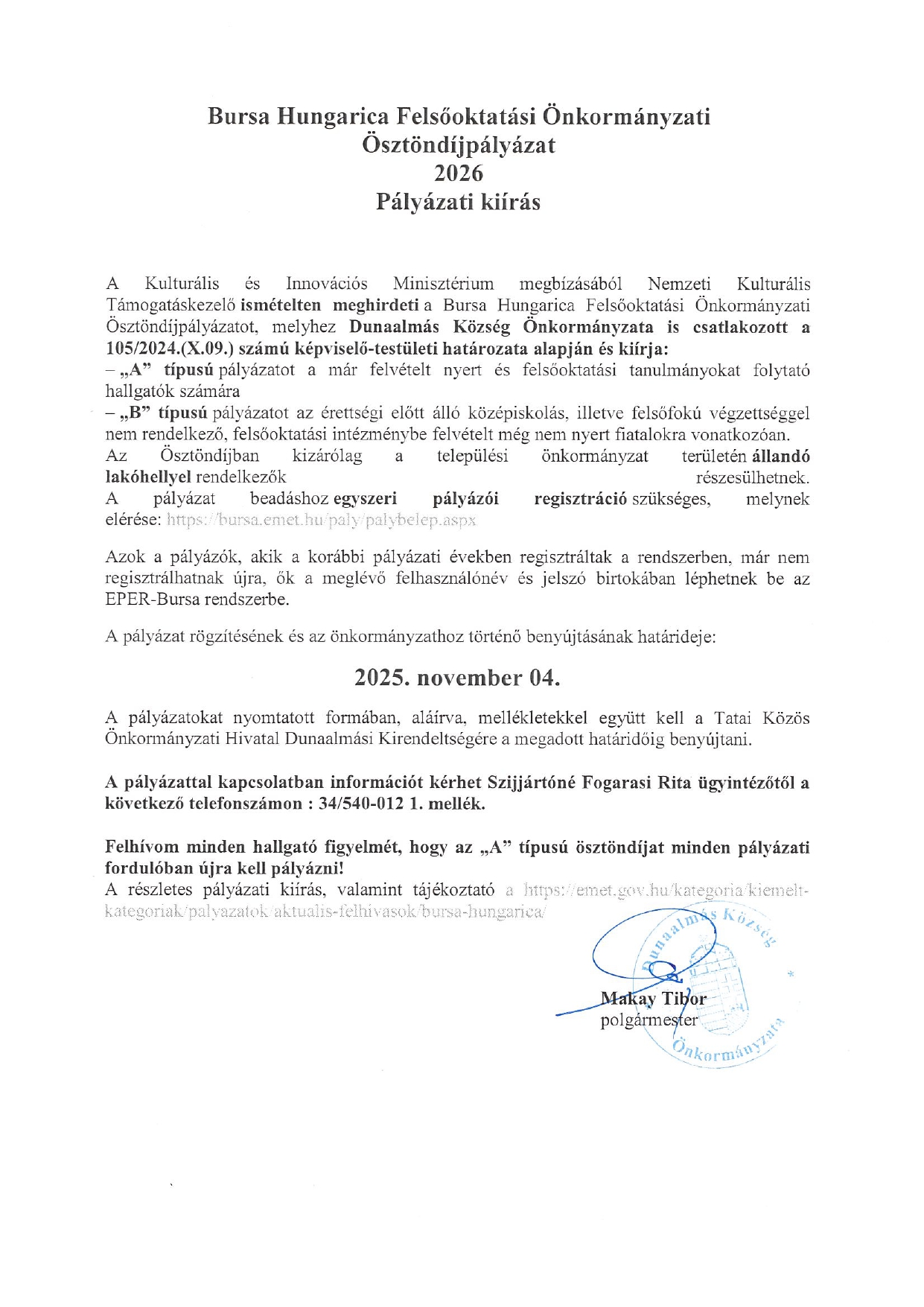 Tatai Közös Önkormányzati Hivatal Dunaalmási Kirendeltsége